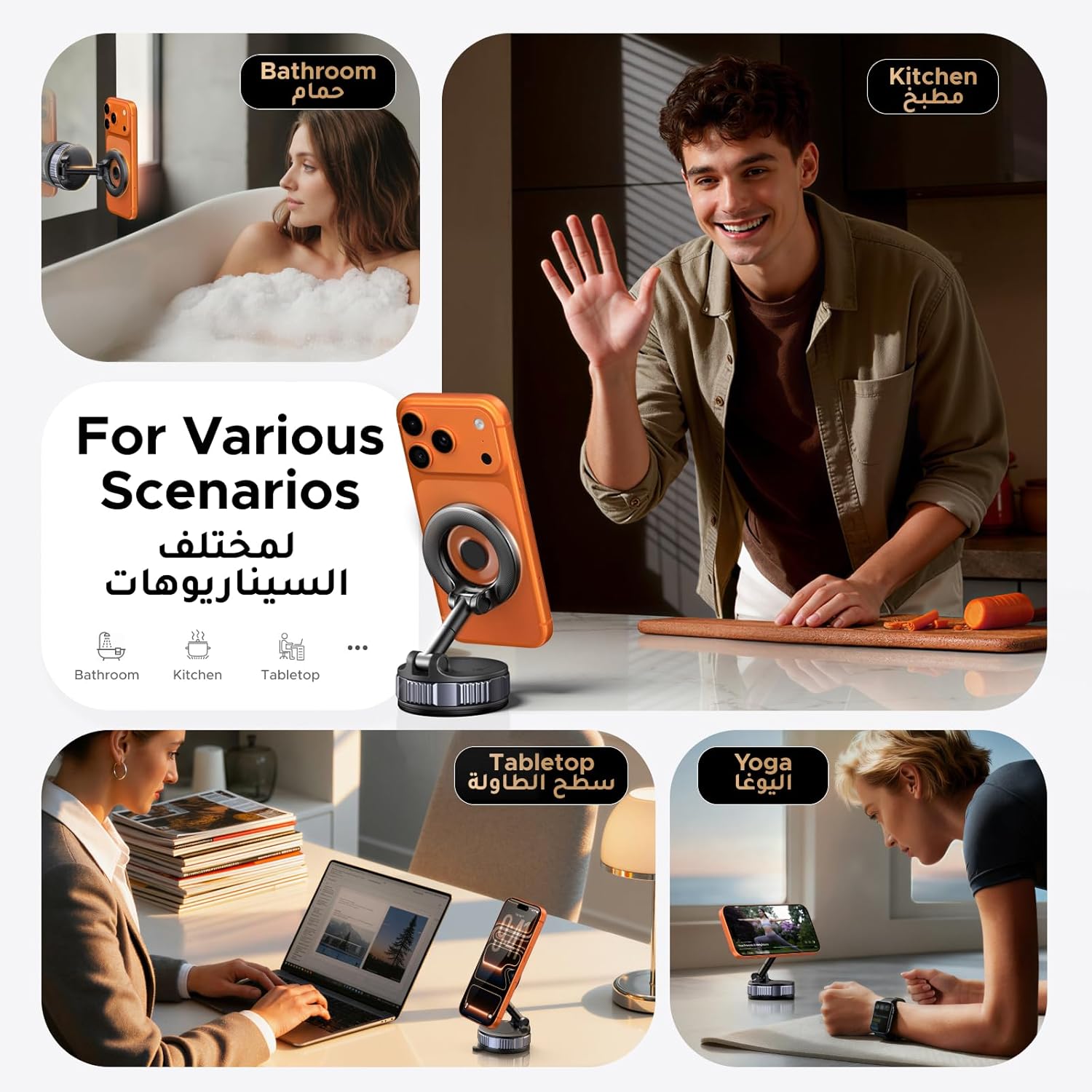 Built for everyday life, not just the car. Stick it to your windshield, your kitchen tiles, or your mirror. Move it from place to place in seconds.